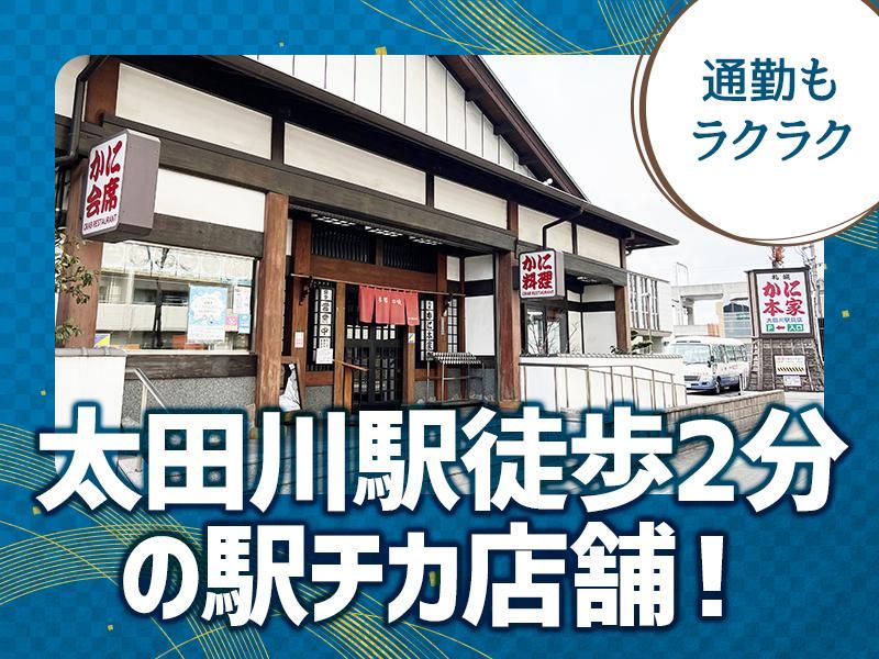 仕事内容 \ 名鉄「太田川駅」スグ / 17:00~22:00の短時間勤務! 学生さん・フリーターさん大歓迎★ 【働きやすさの注目ポイント!】 ⭐週ごとのシフト提出だから、 サークルやテスト期間の予定も立てやすい! ⭐履歴書不要で面接OK! 「やってみたい」と思ったらすぐ応募可能♪ ⭐就活にも役立つお仕事! 働きながら美しい所作やマナーが身につきます。 ▼ お願いするお仕事はシンプル! お席へのご案内、オーダー取り、 お料理・ドリンクのご提供など。 ✨かに本家のインスタグラムがスタート!✨ 空き時間にSNSの更新や写真撮影などに 協力していただける方大歓迎! ✨未経験でも「かに本家」なら安心の理由✨ ・コース料理が中心! 次にお出しする料理の順番が決まっているため、 パニックにならず落ち着いて動けます。 ・お席担当制! ご来店からお帰りまで同じお客様を担当! あちこちのテーブルを走り回ることはありません。 ・いきなり一人にしません! 着物の着付けから接客の基本まで、 先輩がマンツーマンで優しくレクチャーします◎ 同世代の学生・フリーターさんが和気あいあいと活躍中! 「接客は初めて…」という方も、 先輩がしっかりそばでサポートするので 安心して飛び込んできてくださいね! 勤務地は名鉄「太田川駅」近く! 大田町や高横須賀町をはじめ、 名古屋市、大府市、知多市、知多郡東浦町など 近隣から通うスタッフが多数在籍中です。