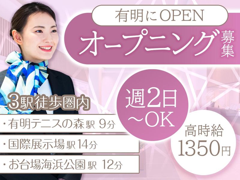 仕事内容 /////////////////////////////////////// ⭐オープニングスタッフ募集⭐ 有明エリアの⾼級マンションで 新しい仲間と⼀緒にスタート! /////////////////////////////////////// ホテルのような綺麗な内装で毎⽇快適に働けます✨ 来客数が少ないため、落ち着いた環境で業務に集中できる職場です。 接客経験を活かし、新たなキャリアを築きたい方に最適なポジションです。 未経験の方も充実した研修制度が整っており、安心してスタートできます。 ■■■ アピールポイント ■■■ ◎週2⽇〜OK!シフト柔軟 ◎主婦(夫)、中⾼年活躍中! ◎家庭・プライベートと両立しやすい ◎副業・Wワーク歓迎 ◎充実の研修あり ◎通し勤務でしっかり稼げる! ■■■■■■■■■■■■■■■■ ▽アクセス便利!複数路線利用可能◎ ・ゆりかもめ「有明テニスの森駅」 徒歩9分 ・ゆりかもめ「お台場海浜公園駅」徒歩12分 ・りんかい線「国際展示場駅」徒歩14分 <公共バスご利用の場合> バス停「有明一丁目」 徒歩2分 ◎バス所要時間 都バス海01系統「豊洲駅前」まで 16分 都バス東16系統「東京駅八重洲口」まで 42分 都バス都05-2系統「銀座四丁目」まで 22分 ✅具体的には  ̄ ̄ ̄ ̄ ̄ ̄ ̄ ・来客、住⺠対応 ・宅配、郵便物の受け取り&預かり ・建物内の⾒回り ・設備やトラブルの報告、連絡 ・掲⽰物の管理 ・鍵の管理 など ✅マンションのフロントとは  ̄ ̄ ̄ ̄ ̄ ̄ ̄ ̄ ̄ ̄ ̄ ̄ ハイグレードなマンションにお住まいの居住者さまの安心・快適な暮らしを支えるお仕事です。 マンション内は、ホテルのようなロビー・ラウンジ・内装でとても綺麗です。 空調の効いた屋内で快適に働くことができます。 商業施設やホテルに⽐べて、来訪者数が少ないため、落ち着いた雰囲気。 住民層はファミリーや共働き世帯が多く、安定した環境が魅力です。 常に誰かと話すわけではないですが、短い時間での印象が⼤切になるので、笑顔で気持ちよく対応できる⽅に向いています。 ✅未経験でも安⼼の研修あり  ̄ ̄ ̄ ̄ ̄ ̄ ̄ ̄ ̄ ̄ ̄ ̄ ̄ いきなり⼀⼈でお任せすることはありません。 ⼊社後には居住者様への対応についてしっかりお教えします◎ ほとんどの⽅が未経験からスタートして活躍しております。 ▼前職は様々… 専業主婦、販売スタッフ、倉庫スタッフ、事務職、飲⾷業 など ✅働きやすさ抜群!  ̄ ̄ ̄ ̄ ̄ ̄ ̄ ̄ ̄ ̄ 残業はほぼなし! ご家庭や趣味などの都合に合わせて勤務も可能♪ 人と接することやサポートすることが得意な方にぴったりのお仕事です! これまでの接客経験を活かし、さらに成長できるチャンスです。 40代・50代の方も多く活躍中! 安定した環境で、長く続けられるお仕事です♪ お気軽にご応募お待ちしてます。