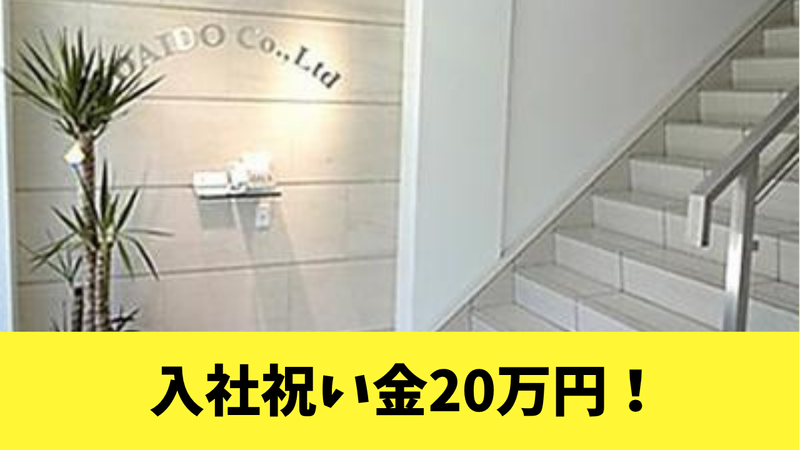 入社祝い金20万円!完全週休2日!賞与年3回(前年実績)