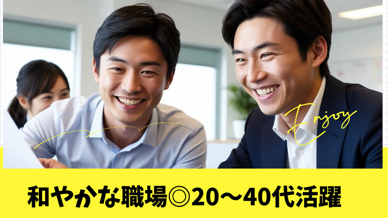 職場環境 20代・30代が活躍中! ■リラックスして働ける職場! (お取引先からも良く褒めれらます(笑)) 残業が発生しないほど 協調性をもって業務に取り組めるのが 当社の魅力の1つです! 喫煙所:喫煙所あり(屋外)