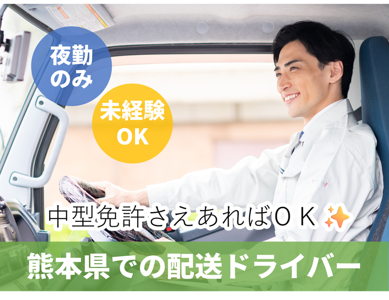 仕事内容 ✅お仕事内容 植木、山田青果にて、荷物集め・振り分けなどを行い、 4トントラックに乗って、店舗へ荷物を積みこみます。 その後、ダイレックスムサシプラザ店・ダイレックス御船店まで 商品を運び、山田青果に帰ってくるお仕事です。 基本的には、武蔵~御船1台で積める量をお願いします。 連休などある場合は各店舗1便の時あります。 武蔵、御船にて、カゴ台車のバックヤードに荷卸しあります。 ~その他、詳細は面談にて!~