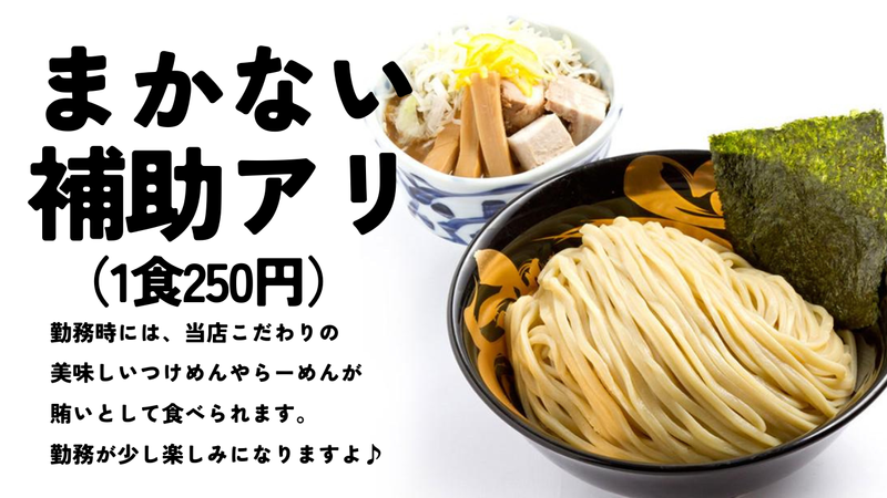 【保険制度】 雇用保険、労災保険、健康保険、厚生年金 待遇・福利厚生 【福利厚生】 昇給あり まかない補助あり(1食250円) 交通費規定内支給 高校生も同一時給 ミニボーナス支給