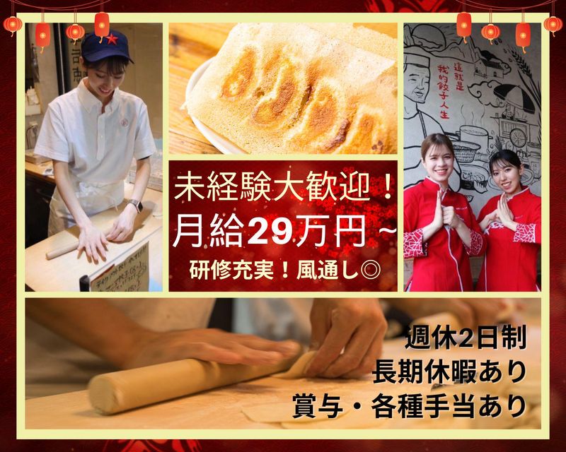 仕事内容 ~*~*~*~*~*~*~*~*~*~ ミシュラン・ビブグルマン掲載の味を武器に マニアブランドを全国へ! \働きやすさ・やりがい・待遇◎/ ▽求人のポイント▽ *明確な評価軸 *経営ノウハウが学べる *独立しやすい環境 *店舗運営の自由度が高い *休暇と給与は高水準 ~*~*~*~*~*~*~*~*~*~ <仕事内容> 店舗運営のための仕入れ、仕込みから調理、 在庫管理、メニュー開発など キッチン業務全般をお任せします! マネジメント未経験の方ももちろんOKです! あなたの経験・スキルに応じて お仕事をお任せするので、 着実にステップアップできます! ゆくゆくは店舗ごとの売上や 予算管理もしながら 店舗運営まで任せていきます。 人件費や食材費、販売費などを把握し、 店舗経営とはどういったものかなど 学ぶことも可能です! 経験やスキル、希望に合わせて お仕事をお任せしていきます。 分からないことや不安なことがあれば、 なんでも相談できる環境はあるので 安心して取り組んでください! ▼当社のアピールポイント▼ \従業員の働き方改革に挑戦中/ 「飲食業界は給与が低い」 「飲食業界はブラック」 「家族に反対される」 たしかに日本の飲食店は個人店も多く、 制度設計が出来ていないことで そんなイメージも多いのは事実。 そんな業界イメージを払拭し、 利益率の高いマニアブランドでの 新たな働き方を手にしてください。 <当社の5つの取り組み> ◆充実した手当と待遇面 住宅手当や家族手当など 代表が上場企業出身のため、 通常の飲食店ではまだ整備されてない手当が 当社には多数あり! 家族にも認められる、尊敬される。 そんな働き方をしてほしいと 本気で思っております! ◆利益率が高く、高水準の給与体系 飲食店は利益率が低いとされていますが、 弊社の利益率は平均で20%~30以上! 中には40%を達成する店舗もあり、 全店舗が黒字化運営をしております! 原価が安い餃子を中心に本格高級料理へと 変貌していく当社のビジネスモデル。 どのお店も繁盛店になるからこそ、 従業員の高水準の給与を実現できています! ◆圧巻の研修制度とその種類! 入社後研修をはじめ、マナー研修、 ビジネス研修など当社の研修は種類が豊富。 本場中国の味を再現するため、 現地の学校から受ける教育制度、 外部の有名講師を招いたサービス研修など、 スキル・経験は入社後でも身につきます! ◆社内がフラットで入れる環境! 制約がないからこそ自由に発言が出来る! そんなフラットな職場環境を実現! 社員旅行はもちろん、ベンチマークしている 繁盛店視察、社員総会、PA卒業式など、 社内コミュニケーションを 重要視しているため、 日々の業務以外で交流を深める環境を 準備しております。 新メニューなども気軽に社長に 相談して開発でき、 予算を気にせず、基本NGなし! 前向きな目標を持っている 従業員が多いので 刺激的な職場であることは 間違いありません。 ◆長く働ける職場!低い離職率! 創業から7年、最初から一緒に会社を 作ってきた従業員も多く、勤続年数は長め! 独立志向、役員を目指したい、 そんな方たちのために、 今後は店舗で働く以外の部署も 作っていきます! 代表も上場企業でアルバイトから 役員になっているので、 固定概念なんてありません! 知識や経験を存分に発揮できる 将来のキャリアも準備するので 安心して働いてください! <餃子マニアってどんなお店?> 店内には中国の屋台をイメージした 装飾が施され、赤い提灯や ネオン看板が並ぶ賑やかな空間です。 「異国情緒を感じられる!」と お客様からも大好評! 旅行気分で美味しい餃子を楽しめます♪ <どんなお料理を提供しているの?> メイン料理は大人気の餃子! ここでしか食べれない餃子もあるので リピートのお客様も多く来店! ガチ中華としておつまみなど 本場の味を完全再現しています。 店内だけでなく、お皿やお酒まで こだわりを持って提供しております。 ◎当社で働くポイントはこちら◎ (1)将来独立したい若手必見! 当社のプロデュースは従業員にまで 及びます! 創業メンバー2名も自身の夢を叶えて プロデュースを経て独立! 物件探しから店舗のデザイン、 店舗の出店資金や借り入れまで お手伝いします! 30坪ディナーのみの営業で店舗利益 500万円が残るほど、集客に自信あり◎ (2)業界トップクラスの高月給! 高いパフォーマンスを出すためには、 社員さんの満足度が一番と考え、 業界TOPレベルの待遇をご用意しています。 ◇スタッフの平均月給35万円! ◇経験者の方は初任給でも 39万円以上のスタート可能! ◇複数店のマネージャーは 年収600万以上も実現できます! (3)飲食で働く以外の仕事も学べる! 飲食は来店してくれるお客様が一番。 当社はプロデュース店舗を 100店舗作っていくため、 プロデュース依頼の経営者様もお客様です。 依頼のあった経営者様に対して お店の立ち上げ教育など BtoBの仕事も出来る! 経営ノウハウは格段とあがること 間違いナシ! (4)食べログ100名店選出! グルメサイトに頼らずして 月間1600万円超の売上を作る