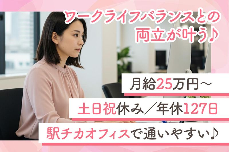 事務経験が活きる★年休127日/業績給あり/駅近オフィス