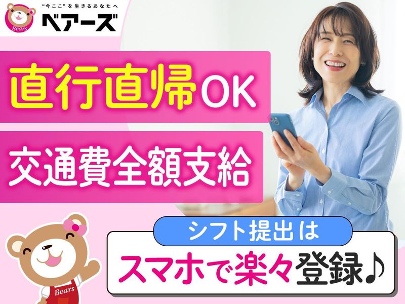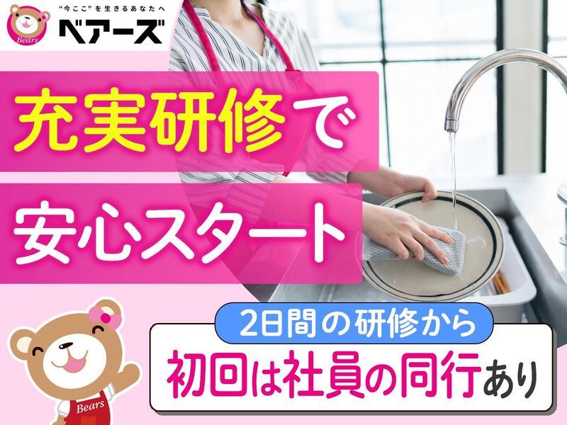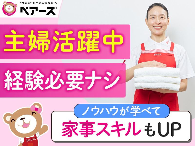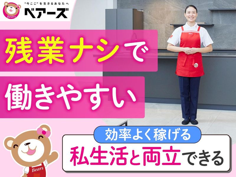 職場環境 <業界大手!安心のベアーズ> 全国5大都市を中心にサービスエリアを全国に拡大中! リピーターのお客様が多く、 累計550万件以上の提供実績あり! 研修・フォロー体制も整っており、 完全自社雇用スタッフの登録数は6万人を超えています。 喫煙所:なし(敷地内全て禁煙)