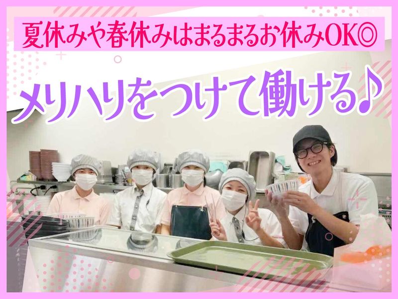 仕事内容 \子育てと両立しやすいと大好評!/ “続けやすさ”で選ばれている学食しごと♪ *・。*・。*・。*・。*・。*・。*・。 ■ 園や家庭の予定に合わせやすい♪ 急な呼び出しOK! 「熱が出たから迎えに来てください」 「今日はちょっと遅れそう…」 そんな“よくあるハプニング”にも 柔軟に対応できる環境です◎ 同じように家庭と両立している スタッフが多いので、 困ったときはお互いさま。 嫌な顔をされることも、 代わりの人探しに追われることもありません。 入園式・発表会・遠足など、 行事の日はしっかりお休みできます。 ■ 完全平日のみ!短時間でサクッと♪ 「送ってから働きたい」 「お迎えの時間までがいい」 そんな働き方がちゃんと叶います。 平日のスキマ時間だけで 無理なく続けられるのが魅力! さらに、夏休み・冬休みなどの長期休暇は “まとめてお休み”も取りやすいので、 家族との時間もしっかり確保できます◎ *・。*・。*・。*・。*・。*・。*・。 ■ サッと働いてパッと帰れる気軽さ 仕事はシンプルで、 時間ごとの流れも決まっているから、 “考える負担”がとっても少なめ。 残業はゼロ。 定時になったら そのままお迎えに向かえます♪ スタッフ同士が自然と助け合う環境なので、 1人に負担が偏らないのも 働きやすさの理由です。 ■ お仕事は“家事の延長”レベルでOK! まずは盛付や洗い場からゆっくりスタート。 ● 盛付・提供 お皿に盛り付けて「どうぞ〜」と渡すだけ。 学生さんの“ホッとする瞬間”をつくれます。 ● 洗い場 食洗機がしっかり働いてくれるので楽ちん。 手荒れが気になる時は手袋OK! ● 簡単な調理 麺をゆでる、温めるなどのシンプル作業。 包丁は使いません◎ 「これ家でも使えるかも!」 って発見も多いんです♪ ● レジ タッチパネルで“ピッ”とするだけ。 機械が苦手な方でもすぐ慣れます。 ■ 決まった流れで進められて安心 業務は時間帯で内容が決まっているので、 慣れると自分のペースで気持ちよく動けます。 ■ 接客が苦手な方でもOK! 学生さんや先生が中心で、 穏やかで優しい方ばかり。 裏方メインで働くスタイルも選べます。 ■ 1週間ごとのシフト提出で予定が組みやすい! 「家庭の予定に合わせたい」 「平日だけがいい」 「学校行事にあわせて」 すべてOK!希望を出しやすい環境です。 大学の長期休暇(2~3月・8~9月)は 勤務日数を減らしたり、 まとまったお休みを取るスタッフも多数。 なんと 1ヶ月まるっと お休みしている人もいるほど柔軟です◎