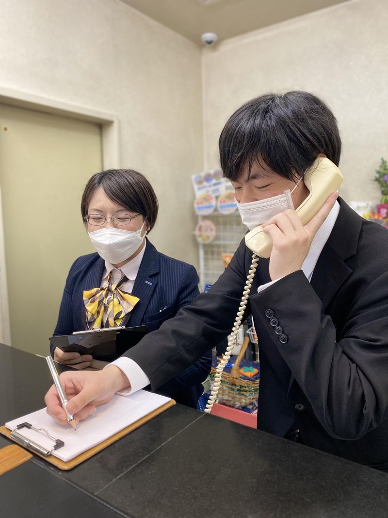 仕事内容 ★嬉しい高時給★ 未経験スタートのスタッフ多数!! まずはできることからお任せします。 【主なお仕事内容】 チェックイン対応、電話・ネットからの予約対応、館内確認作業や お客様への挨拶、予約が入った際の予約番号の記入、データ入力などをお任せします。 マニュアル完備+社員の先輩スタッフが丁寧にフォローするので安心してください。 約1ヶ月(週2、3回勤務)くらいで大体のフロント業務内容を 覚えられる方がほとんどなんですよ◎ 接客などの経験がない方でもチャレンジしてみたいという気持ちがあれば大丈夫です! 「やりがいを感じながら働きたい」「成長しながら働きたい」という方にはピッタリ◎ 人柄重視の採用なので、面接では緊張せずどのように働きたいか気軽に教えてくださいね♪ お客様が最初に訪れるフロントという場所で、ホテルの顔として一緒に働きましょう!