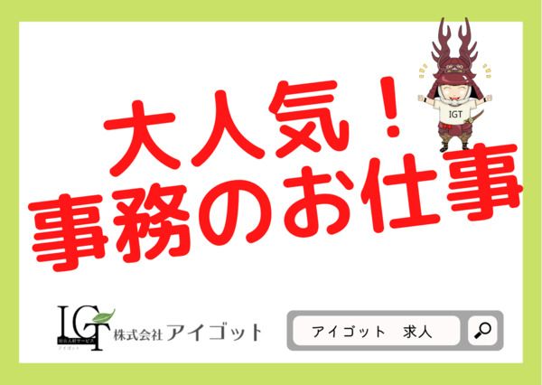 キャッチコピー 少人数の落ち着いた環境でオフィス事務のお仕事しませんか 制服もなく、髪色もネイルも自由です! アピールポイント 長期休暇は基本9日以上! 落ち着いた環境で仕事できます。 雇用形態 派遣社員 掲載企業名 株式会社アイゴット 応募受付先電話番号 0594-41-4520 【JOYPLUS】三重県内最高水準の福利厚生サービス 福利厚生サービスを展開する株式会社ベネフィット・ワン。 同社が手掛ける会員制のライフサポートサービスが「ベネフィット・ステーション」です。 そのサービスが利用できる『JOYPLUS』は当社グループ起業で働くスタッフさんなら全員利用可能。 旅行、レジャー、エンタメ、美容、グルメ、スポーツ、育児、教育、介護など様々なカテゴリーのサービスを使うことができます。 ここまで充実したサービスを提供できるのは、三重県内でも数社しかありません。 みなさんも、ぜひ活用してくださいね。 ゚*.。.*゚*.。.*゚*.。.*゚*.。.*゚* 【弊社登録スタッフはこんな方が働いています!】 「集中してガッツリ働きたい」や、 「高時給で安定収入がほしい!」など、 様々な理由で働いている方が多数います! ちなみに弊社登録スタッフの前職は、 パチンコ店員・清掃員・飲食店スタッフ等、様々! 面接時に派遣の不安な点を教えてください! 弊社スタッフがしっかり払拭します。 \こんな方にもオススメ/ 軽作業未経験の方 10代・20代・30代・40代から中高年まで活躍している職場を探している方 派遣スタッフの経験を活かしたい方 ブランク復帰できる仕事を探している方 セカンドキャリアとしてのお仕事をお探しの方 フォークリフト免許や玉掛け免許をお持ちの方 高収入・高時給のお仕事をお探しの方 コンビニ・スーパー・飲食店・ファストフード店での勤務経験を活かしたい方 現場作業の経験がある方 建築業界に興味がある方 \こんなお仕事を探されている方にピッタリ/ 仕分けやピッキングなどの倉庫内作業 箱詰めやシール貼りなどのコツコツもくもく軽作業 梱包や包装、加工などの工場製造や機械オペレータ 食品工場(肉・鮮魚・野菜・惣菜)での盛り付け・調理・材料カット ラインオペレーターなどの工場作業員 簡単な工具を使った組立・組み付けなどの工場内作業 溶接や塗装などの工場スタッフ <キーワードで探している方に!> 【シフト重視!】 長期歓迎、シフト自由、平日のみOK、週4日以上OK、 固定シフト制、シフト制、早朝・早番・午後・夕方・フルタイム歓迎など! 【待遇重視!】 日払いOK、交通費全額支給、交通費支給、社員登用あり、長期休暇あり、 転勤なし、転居を伴う異動なし、職種変更なし、バイク通勤OK、車通勤OK、 髪型・髪色自由、ひげOK、ネイルOK、ピアスOK、制服ありなど! 【働き方重視!】 未経験者歓迎、業界未経験者歓迎、経験者歓迎、有資格者歓迎、 副業・WワークOK、ブランクOK、フリーター歓迎、即日勤務OK、 友達と応募OK、40代以上応募可、50代以上応募可、など! 本案件に合わない内容もございます。 ご希望される待遇があれば、できる限り近しい案件をご紹介します! 本案件と関係なくても、お気軽にお問い合わせ下さい! 企業情報(備考) 企業名:株式会社アイゴット 事業内容:●労働者派遣事業(派遣許可番号 派24-300347) ●有料職業紹介事業(24-ユ-300230) ●施工仲介事業 ●緑化レンタル・販売事業 ●業務請負 資本金:2,000万円 URL:https://ngp-grp.co.jp/igt/index.html 株式会社アイゴット 設立日 2015/3 事業内容 ●労働者派遣事業(派遣許可番号 派24-300347) ●有料職業紹介事業(24-ユ-300230) ●システム運営 ●ホームページ製作 URL https://ngp-grp.co.jp/igt/index.html Instagram https://www.instagram.com/ngp_igot/?hl=ja 【こんな検索をされている方にオススメです】 #主婦・主夫歓迎 #学生歓迎 #ブランクOK #経験者歓迎 #有資格者歓迎 #未経験者歓迎 #経験不問 #有資格者歓迎 #未経験者歓迎 #経験不問 #学歴不問 #長期 #交通費支給 #禁煙・分煙 #車通勤OK #バイク通勤OK