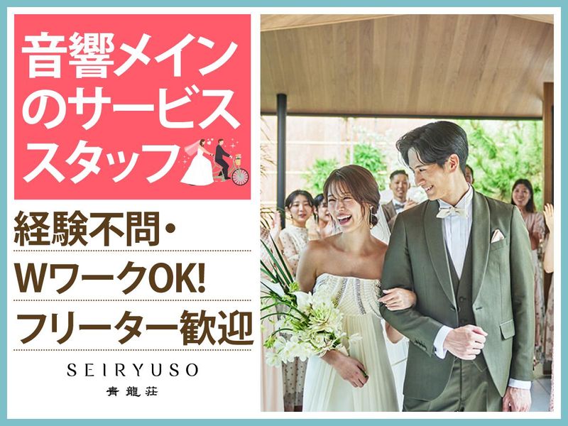 仕事内容 ✅経験者優遇◎未経験でもOK! ✅週2日~1日5時間~OK! ✅週2~の柔軟シフトでWワーク・副業OK! ✅フリーター活躍中!社員登用有☆ 「結婚式を裏側から支えてみませんか?」 スキルや経験があれば活かしていただけます! 一緒に素敵な結婚式を演出しましょう* <主なお仕事内容は…> ・結婚式での音響オペレーション (BGMやマイク操作など) ・お席のご案内 ・結婚式のお料理・ドリンク提供 9割は音響・照明のPA業務です! お色直し中など手が空いたタイミングで、 ドリンクを聞いたり、お皿を下げたり程度の サービス業務も行っていただきます。 結婚式のイロハもしっかりお伝えします♪ ―――――――――――――――― 未経験でも安心なサポート体制★ ―――――――――――――――― ・丁寧な指導あり! 音響の基礎から結婚式の流れまでしっかり指導します。 土日が慌ただしいため、平日に時間を取って丁寧に教えします♪ ・サポート体制バッチリ! 先輩スタッフがしっかりフォローします。何でも質問できる職場です。 ―――――――――――――――― フリーター・Wワークの方に オススメのポイントはこちら★★ ―――――――――――――――― ☆柔軟なシフト制! 週2日~1日5時間~OK! フルタイムや短時間など、 希望に合わせて働くことができます◎ ☆若手スタッフが多数活躍中! 社員登用制度もあるので、 アルバイトから社員にステップアップする方も多数います。 ☆まかない150円! 美味しい食事が格安で食べられます。 ☆音響スキルが身につく! 機械操作が得意な方は大歓迎! 経験を活かしてさらに成長できます。 ☆昇給&福利厚生あり 頑張りはしっかり評価! 長期的に安心して働けます。