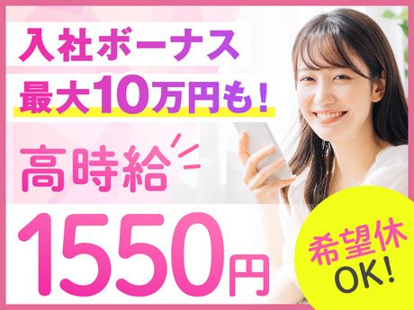 嬉しいプチボーナス10万円も♪全員イキナ高時給1550円>>月収29万円★ヤル気を重視!スピード採用実施中☆彡