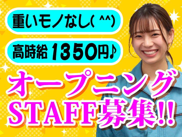 新部署設立につきオープニング募集/軽い部品の検査/女性活躍中/長期安定/未経験OK/土日休み/高時給