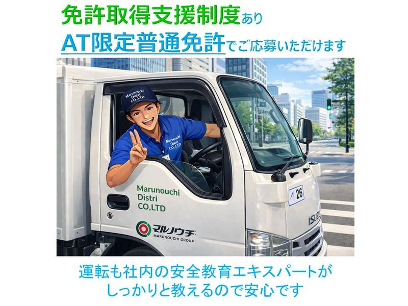 仕事内容 *――*――*――*――*――*――* 休日休暇も福利厚生も充実◎ 働きやすさ抜群の配送ドライバー *――*――*――*――*――*――* 社内には、年齢を重ねても続けられる多様なドライバー職があり、正社員として安心して将来設計が描けます。 また、ルート配送のため毎日ほぼ決まった時間に帰宅でき、安定した働き方が可能です◎ ✅普通免許だけでOK!資格取得支援あり ✅未経験からスタートしたスタッフ多数 ✅土日休みでプライベートも充実◎ ✅賞与年3回!年間64万円支給実績あり ✅ワンルーム寮完備!会社負担25000円あり <配送エリア> 八王子市・町田市・日野市・立川市 担当エリア内での自動販売機への配送、補充のルート配送をお任せします! 《具体的には…》 ・配送トラックへの清涼飲料水の積み込み ・売上伝票を出力し、必要数をピッキングして自動販売機へ補充 ・新商品の入れ替えや在庫・賞味期限のチェック など 自動販売機を使っての研修、運転研修などサポート体制も抜群! 自動販売機の仕事は意外と細かな作業もありますが、 業務に慣れるまでは先輩社員がしっかり付き添って丁寧に指導します。 八王子営業所以外にも東京23区内に勤務地あり! 他に希望があれば優先いたします。 「自宅から近い勤務地が良い」「Iターン・Uターン希望」「入寮希望」などもOK! ・………………………………………・ \ ある1日のスケジュール例 / 08:00 出社。今日まわるルートと日程を確認。朝礼では連絡事項の共有をうける ▼ 08:30 朝の準備をして、そのまま車に乗り込み出発! ▼ 12:00 午前中で10件程度まわる 朝礼で教えてもらった「効率のいいルート」のおかげで、早めにまわり終え、昼食タイム ▼ 13:00 午後も10件程度まわる。無理なくまわれる件数なので、気持ちにも余裕が湧いてくる ▼ 16:00 営業所に帰宅、売上データのチェックと簡単な事務をこなします ▼ 17:00 帰宅。明日も頑張りましょう! ・………………………………………・ ╭━━━━━━━━━━━━━╮ 土日休みで働きやすさ◎ ╰━v━━━━━━━━━━━╯ 毎週「土日休み」+祝日・年末年始など休暇多数! 勤務日は実働10時間で固定時間制。出社時間は7~8時の間で自由に調整可能! 早く始めて早く帰る働き方もOK。1ヶ月の希望シフト制なので、予定にも柔軟に対応できます。 ╭━━━━━━━━━━━━━━╮ 未経験スタート多数!定着率◎ ╰━v━━━━━━━━━━━━╯ 未経験からスタートした若手スタッフも多数活躍中!普通免許さえあれば始められるドライバー。 準中型免許は会社全額負担で取得が可能です! 未経験から始めた先輩が多いから、新人へのサポートも手厚いんです◎ ╭━━━━━━━━━━━━━━╮ 手厚い福利厚生✨賞与は年3回 ╰━v━━━━━━━━━━━━╯ 賞与の合計支給額は、昨年度で年間64万円! 本年度も同水準予定で、プライベートだけでなく収入も安定した環境です。 スタッフには安心して働いてほしいから、結婚・出産祝い金や、年間無事故手当、各種研修制度など福利厚生の整備に力を入れています。 ╭━━━━━━━━━━━━━━╮ 詳しく知りたい方はチェック! ╰━v━━━━━━━━━━━━╯ 当社の社内イベントなど更新しております★ https://www.dist.marunouchicorp.co.jp/topics/ 事業内容や企業情報はHPでご覧ください! https://www.dist.marunouchi-corp.co.jp/