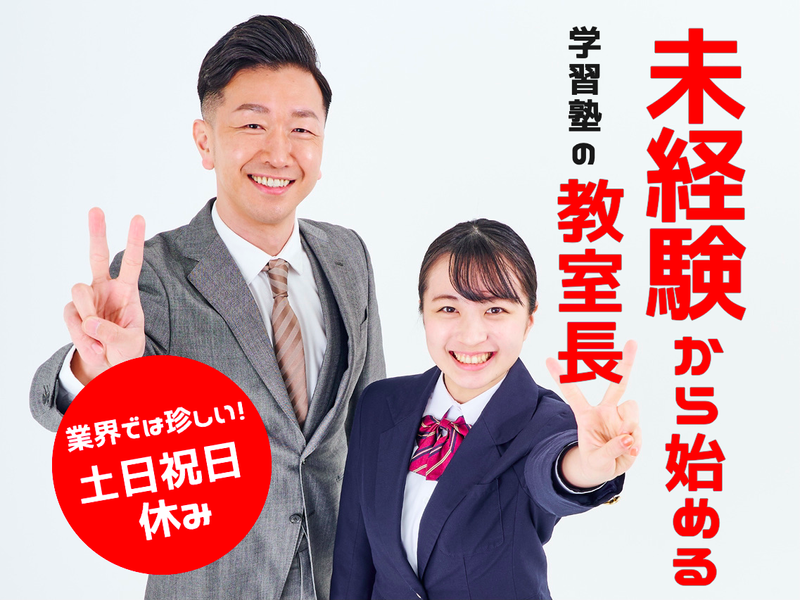 求めている人材 ◆資格・経験不問◆ 講義や採点がないため、未経験でも問題ありません! マニュアル完備、研修もありますので子どもが好き、人と接するのがすき、教育に興味がある方、大歓迎です♬ 【歓迎条件】 ✅業種・職種未経験の方 ✅学校・塾運営に関心のある方 ✅接客や販売など、人と接する仕事の経験がある方 【求める人物像】 ◆子どもたちの成長を自分のことのように喜べる方 ◆相手の話を丁寧に聞き、誠実な対応ができる方 ◆新しい知識や業務を前向きに吸収しようとする意欲のある方 ◆チームワークを大切にしながら、責任感を持って仕事に取り組める方 【こんな方にはピッタリ!】 ◆未経験から正社員として安定したキャリアをスタートしたい方 ◆「教える」ことよりも「見守る・支える」教育に携わりたい方 ◆土日祝休みなど、プライベートの時間も大切にしながら働きたい方 ◆20代〜40代など、幅広い世代が活躍している職場で働きたい方 ※1つでも当てはまる方は是非ご応募ください。