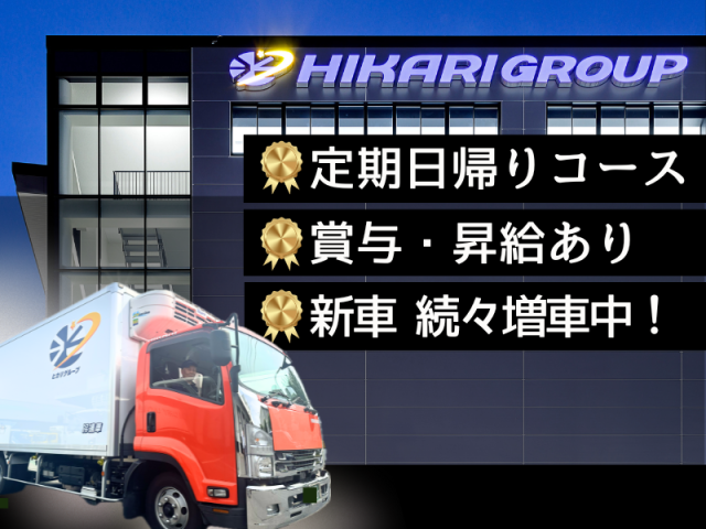 【深夜帯×日帰り配送×固定支給】岡山県下トップシェア×複数事業を展開するヒカリグループ! \業績好調!増員採用!/ 【応募締切2025年12月31日まで】 ●求人のポイント ①完全日帰り ②店舗へルート配送 ③定期コース ④給与は月27万円固定支給! ⑤キレイなトラックに乗れる ☆ヒカリの推しポイント☆ 【「出会いと和」を大切にする会社】 ヒカリグループは一緒に働く仲間、 お客様との「出会いと和」を 最も大事にしています。 新たな出会いを貴重なご縁と捉え、 一度きりの関係にならないよう支え合い、 共に成長できる関係性を目指しています。 【待遇面の見直しも積極的】 当社では給与ベースアップや 自動車保険の団体割引・生命保険に 会社負担で加入、様々な祝金など プライベートを更に充実させられる 福利厚生があります◎ 【安全への取り組み】 トラック新車入替(毎年計画的に実施) ディーラー点検、安全装置機能搭載、 熱中症対策(ドリンク・ポロシャツ支給等) 月1回定例会議実施などドライバーの 安全につながる取組みを行っています。 なので、入社数年で新車トラックに 乗り換えるドライバーも複数!!