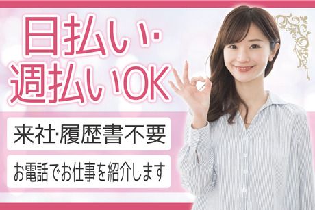 選考プロセス 平日10~19時の間のWEB応募には 応募確認後スグに入力頂いた電話番号に06-6225-8324から連絡します。 その際にシフトや開始日等の希望をうかがい、お仕事を紹介します。 ※連絡時にご不在の場合は携帯番号を入力頂いている場合はショートメッセージをお送りします ※土日祝や10~19時外の応募は翌営業日に連絡します 【問合せ先について】 問合せ先:06-6225-8324 ☆不明な点やもう少し詳しくお仕事の確認をされたい場合などは お気軽にお問い合わせください。 ●弊社営業時間:平日10~19時 ※営業時間外でも対応可能な場合もあります。 応募方法 来社&履歴書不要! 必要事項を入力の上、【応募する】ボタンよりご応募下さい。 電話での応募も受付中! お急ぎの方は下記番号よりお電話をお待ちしております。
