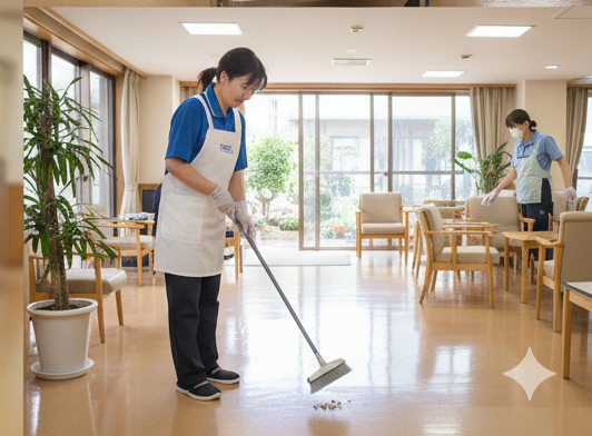 仕事内容 エイペックスひろのケアハウス内での 食事準備(盛り付け)・ 配膳業務および館内清掃をお願いします。 ▼食事関連業務 主に盛り付けや配膳などのサポート業務。 難しい調理業務はありません。 ▼その他の時間帯 ケアハウス各階の清掃業務を 行っていただきます。 共用部の清掃が中心で、 特別な資格や経験は不要です。 ※直接介護業務はありません。 身体介助などは一切ないため、 介護の資格がなくても安心して働けます。 ◆自立型ケアハウスとは? 「自立型ケアハウス(軽費老人ホーム)」 自立している方が多く、日常的な生活に 不安がある方を対象とした施設です。 ✔ 直接介護なしで安心 ✔ 盛り付け・配膳中心で難しい作業なし ✔ 短時間OKで家庭との両立もしやすい ✔ フルタイム勤務も可能 ✔ 安定した施設勤務