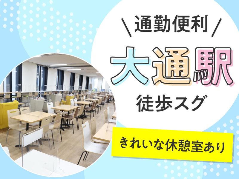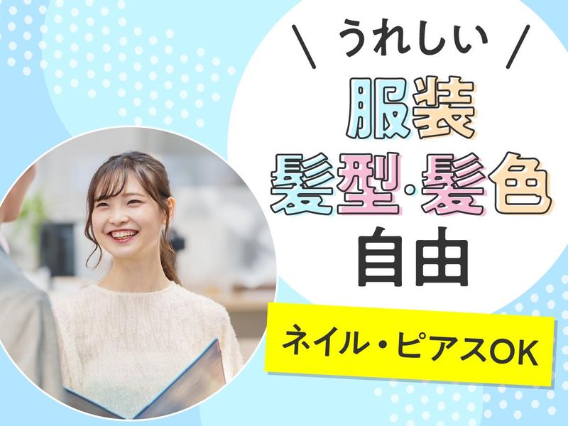 職場環境 異業種から転職したスタッフや、事務経験を活かして働くスタッフが多く在籍しています。チームで協力して業務を進めるため、困ったことがあればすぐに相談できるフランクな関係性が築かれています。子育てや家庭と両立しながら働くスタッフも安心して活躍できる職場です。 喫煙所:喫煙所あり(屋内) 受動喫煙防止措置:屋内原則禁煙(喫煙専用室設置)