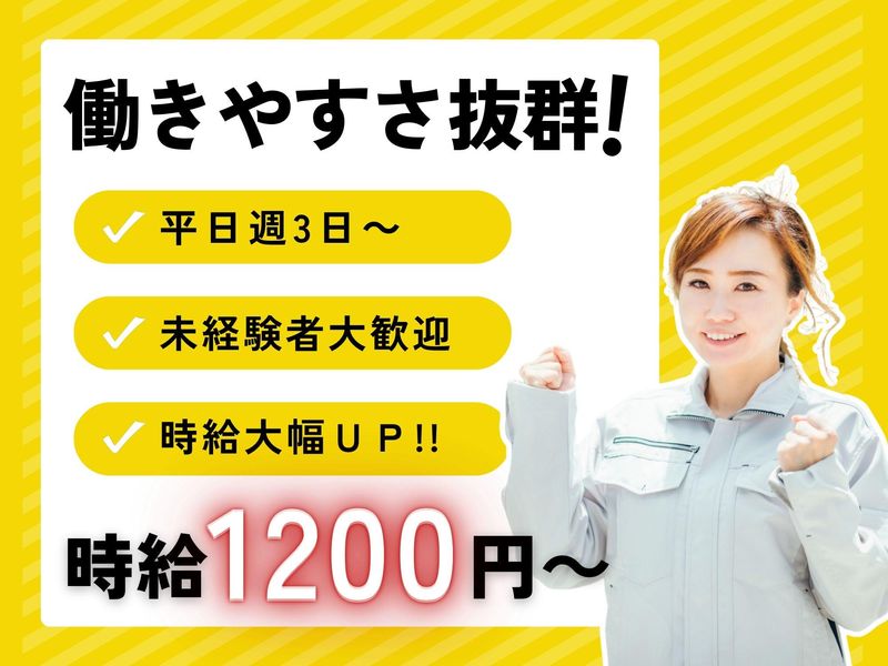 仕事内容 / 時給大幅UP!! 高時給1200円で 効率よく稼ごう✨ \ 作業環境を一新して 新規スタッフ大募集!! ✅高時給1200円! ✅年齢不問! ✅働きやすい時間帯 ✅簡単シンプル作業 ――――――― 【 仕事内容 】 ――――――― 簡単な日用雑貨の 梱包・検品・組立をお任せします! 特別なスキル・技術は 必要ありません! 倉庫内作業の経験が ない方ももちろんOK! 働きやすい時間帯で 30~60代主婦さん活躍中です⭐