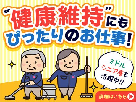 仕事内容 ●お仕事内容はコチラ ビル清掃スタッフ ◇ビル共用部 エントランス掃き拭き・各階階段・外回り清掃等 ※3現場担当いただきます。 使う用具は実際にお家で使用する 掃除機やほうきなど身近なものばかり! 専門的な用具を使うことはないので、安心して働けます◎ 入社後は弊社スタッフが お仕事の流れをイチから丁寧に教えます。 初心者の方でもすぐに覚えられますよ! ●主婦(主夫)・Wワーカー歓迎!経験問いません♪ 「家事があるから…」 そんなあなたを歓迎します! 「スキマ時間にムリなく稼げるから」 Wワークにもぴったり! \平日との生活リズムを崩さず働ける♪/ 学校でクラスメイトとした掃除、 家事として日々行っている掃除、 そんな日常での経験が活きるお仕事です。 ですので、清掃のお仕事が初めての方でも全然大丈夫! 難しい作業もありませんし、 研修制度が充実しているので安心してスタートできます♪ 幅広い年代が活躍できるお仕事ですので、 ご自身の年齢を気にせずご応募下さい♪ ●皆さんが気持ちよく働けるよう職員一同全力でサポートします いい仕事は、まずそこで働くスタッフさんが 気持ちよく元気に働ける環境から始まります! しっかりフォローをしますので 困ったこと、分からないことは 何でも聞いてくださいね。 ●「地域に貢献する」気持ちよさ☆ 「地元で働きたい」 「自宅から自転車圏内で働きたい」 そんな方も是非! 当社では様々な現場を請け負っておりますので、 「他にも勤務地ありますか?」 などのご相談も大歓迎です! 地域の環境を保つことがやりがいに繋がりますし なんだか徳を積んだ気分にもなりますので 「何かいいことありそう♪」とポジティブになれますよ! ●スタッフインタビュー (60歳女性) 「程よく体を動かす業務で 運動の習慣化に繋がっています!」 (55歳女性) 「午前中だけなので、 午後の時間は家事や自分の予定を立てやすく 仕事との両立がしやすいです!」 (66歳男性) 「同世代で未経験の方が 多数活躍していて、 安心して始められました!」
