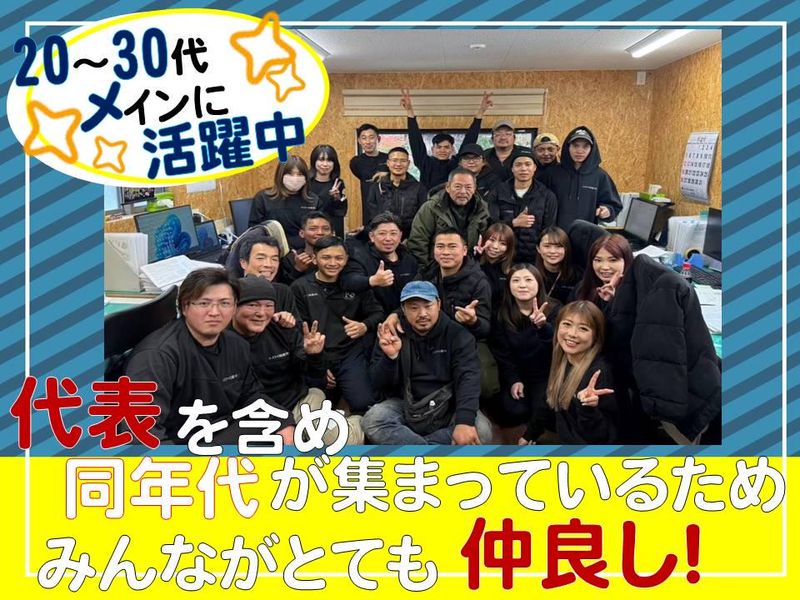 職場環境 現在20代、30代のスタッフがメインと なって活躍しています。 代表を含め同年代が集まっている為 みんなとても仲もいいです! 喫煙所:喫煙所あり(屋外)