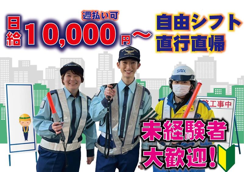 仕事内容 イベントや交通誘導の警備スタッフ募集です。 イベント警備や交通誘導をメインに警備業務を行ってもらいます。 「こちら足元お気を付け下さい」「こちらをお通り下さい」等 こまめな休憩もとれますし、早く終わることも多いです 18歳~70代まで大活躍中! やる気さえあればOK。 年齢、性別、学歴など一切不問です。 最近では、若い女性隊員さんや学生の子達も バリバリ働いてくれています。 外国人スタッフも活躍中です。 警備のお仕事が未経験でも全く問題ありません。 研修時はわかるまで じっくり教えますので、 ご安心ください! 安定して、長期でガッツリとお仕事ができます。 その他多数の現場、お仕事がございます♪ ・短期で働きたい! ・Wワークしてみたい ・長期でかげガッツリお金を稼ぎたい! ・やりがいのある仕事に就きたい! 志望理由はどんな理由でも構いません。 まずはお気軽にご応募をお待ちしています♪ 重いものを運んだりする事はございません! 資格取得も会社がしっかりサポート!! 資格取得されるともちろん給与UP!! 未経験スタートの方がほとんどです! 最初から難しい事をお願いする事は無いので、すぐに仕事も覚えられます! 未経験大歓迎! いきなり本番!ではなく、事前に研修(ビデオを見るなど)がありますので安心してスタートできます。 定年無し、50代60代、シニアの方も活躍中! 体調面も考慮して安心して働けます。 定年がないので安定して長く働くことができます。 交通誘導警備・常駐警備・イベント警備 週2から入れます! 昼勤のみのシフトも可能! 夜勤のみのシフトも可能! バイクの貸し出しあり!(プライベート使用可) Traffic Guard Jobs 【Location】 3-5-6, Arae, Sawara-ku, Fukuoka City, Fukuoka 【REQUIREMENTS】 ・ Japanese: Conversation level ・Must currently reside in Japan ・Proper Visa in Japan required. 【Job Description】 Construction site traffic safety guard and traffic guide 【Working Hours】 8 hours per a day on shift system (8am~5pm) or (9pm~5am) Shift work. You can choose the hours and days you want to work. 【 Holidays】 Shift work. You can choose the hours and days you want to work. 【Wage】10,000 yen~12,000 JPY ~ per day Salary Increase 【Benefits】 ・Uniform rental ・Various social insurance equipping ・Transportation expenses paid