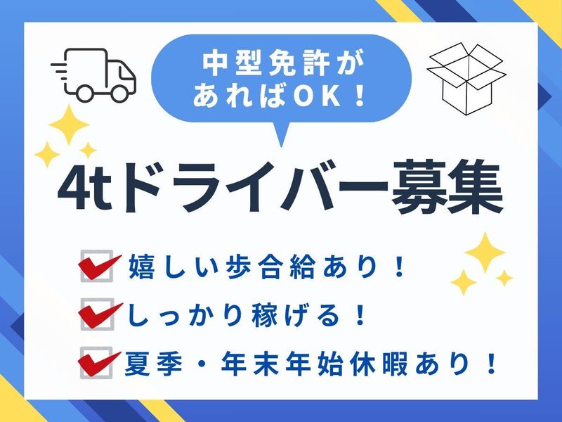 【4t】中型免許OK!日祝休み!長期休暇有!稼げる歩合給有✨
