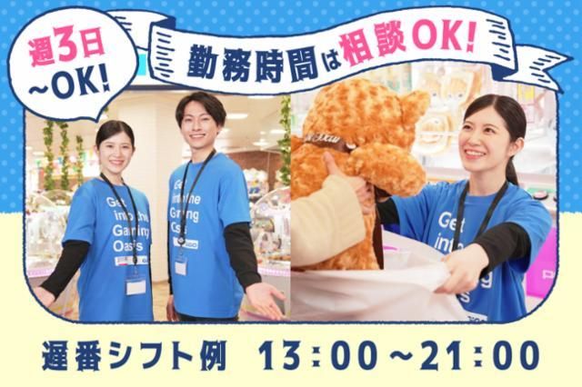 仕事情報 ● 仕事内容 9月にファミリー向け大型コンテンツもいよいよオープン! ご家族のたくさんの笑顔あふれる場を一緒に作りませんか? ゲームセンターの接客・作業全般の他、 新規事業にもチャレンジできる、注目のお店です。 接客を中心に、景品補充・管理・清掃など丁寧な研修で, 未経験の方でも安心してスタートできますよ。 未経験でも安心の研修制度 ゲームセンターで初アルバイトの方の為に 「お客さまの立場にたった接客」の仕方をロールプレイング などで学んでいただきます。接客がわからないまま フロアに立つことはないので安心です。 働き方自由!シフト相談OK! 「学校やサークルのスキマ時間に」 「趣味や別の仕事の合間に」 「扶養内で無理なく続けたい」 そんな働き方、ぜんぶOK! 【シフト制/週3日〜】だから 自分のペースでムリなく働けます◎ テスト期間やお子さんの急な体調不良など、 予定の変更があっても大丈夫。 みなさんが安心して長く働けるよう 柔軟にサポートします♪ GiGOのゲームセンターとは 新ブランドGiGOは、全国各地に約200店舗のゲームセンターを 運営しています。UFOキャッチャーやメダルゲームなど、年齢に 関係なく楽しめるアーケードゲームを豊富にご用意しています。 アルバイトの方にはぬいぐるみやマスコットなどの飾りつけも お願いしています。「すき」を仕事にしてみませんか。 会社情報 当社は、ゲームセンター、コラボカフェなど 幅広いエンタテインメント施設を展開しています。 楽しい時間と空間を通じて、 沢山の笑顔と感動を一緒に創って下さる アルバイトスタッフさんを募集しています。