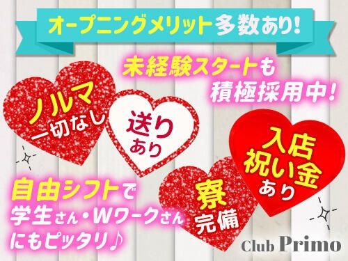 選考について ■TEL応募 担当直通:070-4210-3011 「求人を見て」とお伝えいただく とスムーズです。 ■WEB応募 24時間応募OK! 確認次第ご連絡いたします。 ※問い合わせのみもOK! ※体験入店を希望の方は、 応募の際にお気軽にお伝えください♪ 応募について 【応募方法】 ■TEL応募 担当直通:070-4210-3011 「求人を見て」とお伝えいただく とスムーズです。 ■WEB応募 24時間応募OK! 確認次第ご連絡いたします。 ※問い合わせのみもOK! ※体験入店を希望の方は、 応募の際にお気軽にお伝えください♪ 【応募先企業名】 Primo~プリモ~ 【応募先担当者】 採用担当 【応募先住所】 千葉県松戸市日暮1-2-8 雅裕ビルB1F