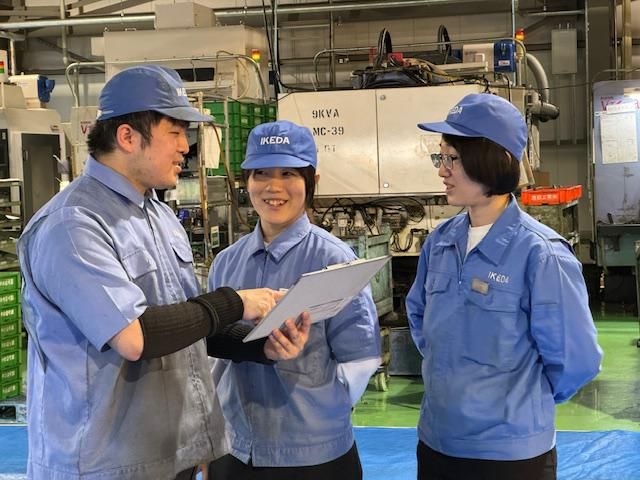 仕事内容 池田工業は自動車に欠かせないカーエアコンや フォークリフトの部品を製造する、 金属部品の精密切削加工のエキスパートです。 業界大手のメーカー各社と直接取引を行い、業績は安定しています。 2023年12月には新本社工場に移転しました! もともと6つの工場で生産をしていましたが、 今回の新工場に生産拠点を集約しました。 エアコン完備で快適な環境で働く従業員とともに、 一緒に仕事をする仲間を募集します! 【仕事内容】 マシニングセンタやNC旋盤などの 工作機械を使って製品を製造する仕事です。 具体的には… <製造> 小ロット多品種の製品の図面を チェックしながら機械加工や仕上げを行います。 金属切削加工を主力業務とする当社において、 現場の最前線ともいうべき重要な役割を担っています。 図面から製品として形になっていくまでの様子を 間近に見られるのはこの仕事の醍醐味。 機械オペレーターに留まらず、機械のプログラミングや 工程設計、試作品の加工などもお任せします。 機械加工オペレーターからスタートし、 先々は加工プログラムの習得や段取り等の プロフェッショナルへ成長してもらいます。 管理職を目指せるコースも用意しています。 技能職は50名(うち半数は女性)います。 <入社後は…> 研修では各部署の役割やモノづくりの基礎を学びます。 その後、配属先のOJTで実践的にスキルを磨くほか、 専門性の高い技能は外部研修で習得していただきます。 ―――――――――――――――――――――――――――――――――――――――― 主要取引先:(株)豊田自動織機、中央可鍛工業(株)、万能工業(株)