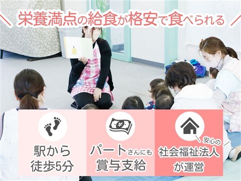 賞与支給☆時給1485円~1885円☆栄養満点の給食が格安で食べられる★就職祝い金6万円あり◇土日祝休み◎駅から徒歩5分!社会福祉法人が運営だから安心【品川区南品川・認可保育園・新馬場駅・保育士・日勤パート】