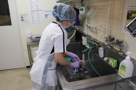 ピンセットなどの医療用品の洗浄スタッフ
