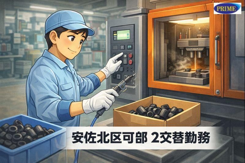 仕事内容 【小物ゴム製品の加工・成形スタッフ】 ◆ おすすめポイント ・ボタンを押すだけ。 ・夜勤も半分あるから、日勤より高い ・定着率100% ・正社員登用あり ◆ お仕事内容 自動車に使われる 小物ゴム製品の加工を行うお仕事です。 工場未経験の方でも、作業はとてもシンプルなので安心してスタートできます。 《主な作業の流れ》 1.ゴム原料をセット(ゴムなので軽い)→ボタンを押す 2.一定時間後、完成した製品を取り出す → 基本的にはこの作業の 繰り返し です◎