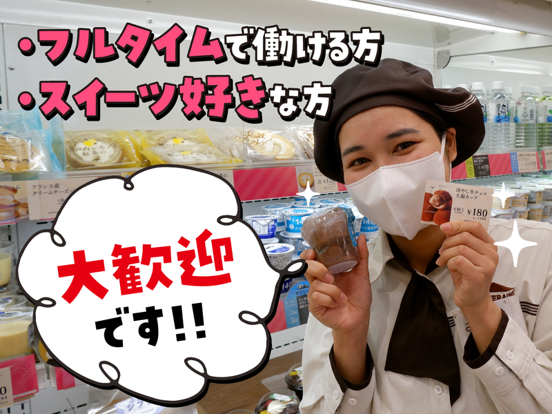 求めている人材 ブランク・未経験OK! 【急募】 ・フルタイムで働ける方 ☆マニュアルがあるので スタートが不安な方も大丈夫♪ 自信が持てるまで、 なんでも丁寧にお教えします! ▼こんな方も大歓迎 ・アルバイトデビューの学生さん♪ ・ケーキ、スイーツが好きな方 ・扶養内勤務を希望する方 ・Wワークをしたい方 ※高校生もOKです。