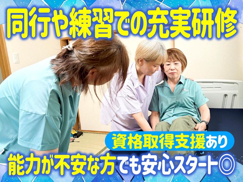 求めている人材 ≪必須≫ ◆下記いずれかお持ちの方 ・介護職員初任者研修(旧ヘルパー2級) ・介護職員実務者研修 ・ヘルパー1級 ・介護福祉士実務者研修 ・介護福祉士 ◆活かせる資格や経験 ・ホームヘルパー1級、2級 ・重度訪問介護 ・身体介護/通院介助/生活援助 ・登録ヘルパー ・訪問介護ヘルパー ・登録ヘルパー ・介護職員 ・日勤/夜勤での勤務 (夜勤専従の勤務も可◎) ≪30代・40代・50代の中高年活躍中!≫ 経験者歓迎!ブランクOK! 扶養内勤務歓迎・WワークOK! 主婦パートさんも在籍中 ▶慣れない仕事もしっかりサポート◎ ================== プライベートに合わせてのお仕事応援◎ ================== ■子育てママ・パパさんへ 「1日1時間だけ」等 スキマ時間を活用できます。 休憩時間は一度帰宅して家事を済ませるもOK ■ブランクがある方・経験が浅い方へ 「資格はあるけど実務経験が少ない」 そんな方も大歓迎! あなたに合わせて先輩がサポートします◎ ■将来を見据えたい方へ 「子育てが落ち着いたら正社員になりたい」 という相談も歓迎。 資格取得支援制度もあり、 働きながら着実にステップアップできます。 *ハローワーク等で仕事探し中の方もぜひ◎