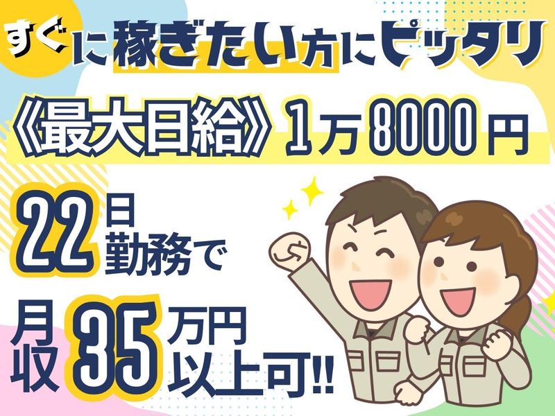 勤務時間詳細 実働時間:1日あたり8時間 平均勤務日数:1ヶ月あたり8日 〜 22日 ⏰08:00~17:00 実働8時間/休憩1時間 ※現場によっては早上がりの可能性有◎ └その場合でも日給に変動はないです✊ ✅週2日~勤務OK! ✅2週間ごとのシフト提出で融通抜群! ✅勤務日数や曜日は気軽にご相談ください! ✅週5日勤務できる方は優遇します!