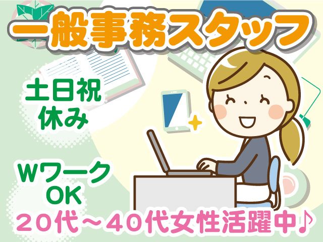 人気の一般事務スタッフ募集! 20代~40代女性活躍中♪ 土日祝休み!WワークOK!