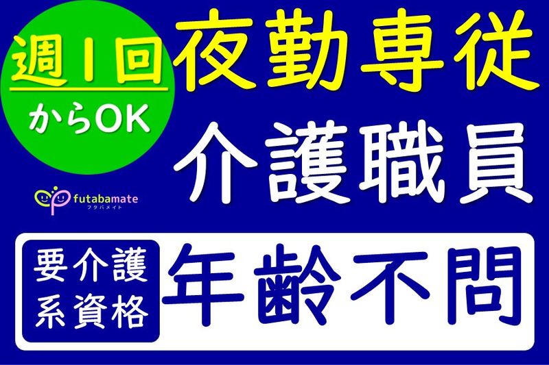 【仕事内容】 2023年1月東海市に新規オープンした住宅型有料老人ホームでの夜勤専従スタッフを募集します。 住宅型有料老人ホームでの「夜勤専従」の介護スタッフさんのお仕事です。 Wワークや副業での勤務もOK。希望の日数・シフトをご相談ください。 「27床のナーシングホーム」の2〜4名体制での夜勤となりますので、ご安心ください! ■具体的な仕事内容 ・排泄、食事などの介助 ・利用者様の巡回と安否確認 ・介護記録 ・起床や就寝時の介助やお手洗い誘導 など ■職員に聞いた入社の決め手 ・働くスタッフや会社の雰囲気の良さ ・休日の多さや有給休暇の取りやすさ ・プライベートが充実できる残業の少なさ 人が大切な介護事業だからこそ、より働きやすさや待遇を整えています。 ■ご応募について いきなりの面接は不安な方や、まずは施設の様子をしりたい、お話を聞いてみたいという方のお問い合わせも大歓迎です。 まずは施設見学だけでもしてみませんか? もっと詳しく知りたい方は、「フタバメイト」で検索してください! 【求人ID-FM02】