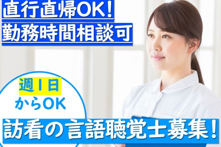 【仕事内容】 訪問看護ステーションのリハビリST(言語聴覚士)スタッフ募集! ■詳しい仕事内容 ・ST関連のリハビリニーズのあるご利用者様へのリハビリを実施。 ・口腔や嚥下などに関する指導や相談対応 ・症状の観察、症状のコントロールや早期発見と対応 など ※直行直帰OK ※業務用スマートフォンを支給、記録は専用アプリを導入 ●お気軽にお問い合わせください。 働き方の相談や、仕事内容のご質問などのお問合せもお気軽にご連絡ください。