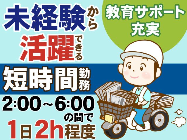 仕事内容 〈アピールポイント〉 ・未経験者大歓迎 ・教育サポート充実 ・Wワーク(掛け持ち)OK ・短時間ワーク(1時半~6時の間で1日2時間程度) ・30代~60代活躍中 ・髪型髪色自由、ピアス、ネイルOK 〈お仕事内容〉 毎朝決まった購読者様のお宅に原付バイクor車で、 朝刊を配達していただくお仕事です。 配達は山形市内の中心部です。 毎回同じ担当地区のルート配送なので、道順を覚えるのもカンタン! ルートはおおむね1~2週間で覚えられますよ! 新聞をポストに投函するだけなので接客はなし。 ストレスなくお仕事することができます! 担当エリアの配達が終われば勤務終了! 〈未経験からでも活躍できます!〉 スタッフの9割が新聞配達未経験からスタート。 分からなかったことがあったら、いつでも聞いてください! まずは先輩スタッフと一緒に担当ルートを回りながら実際の仕事を見ていただきます。 配達時の注意点や、効率の良いルートなどを丁寧にお教えします! 1人で配達にまわるようになっても 安心してお仕事できるようしっかりサポートします! 〈新聞配達の魅力〉 1人での作業なので、人間関係を気にすることなく、 自分のペースでお仕事ができます。 他のスタッフとは販売店で少し顔を合わせる程度で、 配達中は誰とも会話することはありません。 1人で黙々と仕事をしたい方にピッタリ! 適度に体を動かしますので、 健康のために働くシニアの方も活躍中です。 〈このような方にオススメ〉 ・スキマ時間を有効活用したい方 ・日中の仕事と両立したいWワーカーさん ・授業との両立を検討の学生さん ・家計の足しに働きに出たい主婦(夫)さん ・定年を向かえ、健康のために働きたいシニアさん 働く理由・働き方は、人それぞれです! 入社日や面接日などご相談に応じられます。 不安に感じていることや聞いておきたいことがありましたら お気軽にご相談ください!