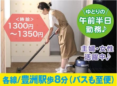 仕事内容 <安心の住友不動産特約店> 住友オフィスビル内の日常清掃! キレイで働きやすい好環境♪ 未経験大歓迎♪親切指導で安心♪ 30代~73歳!主婦・女性活躍中 【勤務地】 有楽町線▶豊洲駅徒歩8分 ※各方面~都営バスも至便! 「枝川バス停」より徒歩1分 (江東区枝川1丁目) 【具体的には】 ☆主に共用部の日常清掃! ・給湯室の清掃・ゴミ回収 ・トイレ、化粧台のお掃除 【勤務時間・選べる日数】 (月~金)7:00~11:00/4h (土 曜)7:00~9:00/2h ★①月~金曜/週5日 ★②月~土曜/週6日 ★③土曜のみ/週1日 【休日・休暇】 日・祝日・GW・年末年始 ※土曜休みも応相談♪ ✅難しい作業や重い機材使用なし! 主婦・女性イキイキ活躍中♪ ✅ビル内は冷暖完備で通年快適♪ - 選ぶなら全国展開で躍進する 安定成長企業(株)コアズへ! -