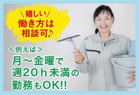 職場環境 ◎まずは作業の流れや清掃箇所・やり方等を丁寧に指導するので安心してスタートできます。 ◎一通り慣れたら担当箇所をコツコツ作業可!テナント社員の方々から感謝の言葉を頂けたり等アットホームな職場環境です。 ◎家庭とお仕事両立して働きたい方に大好評!