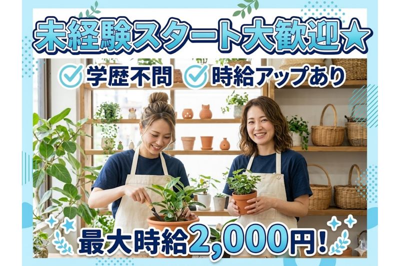 アピールポイント: / 6月1日オープン予定! 事業拡大に伴うスタッフ募集◎ \ 【利用者様の「できた!」を支える】 屋上プランターでのハーブや野菜の栽培や 店舗での雑貨販売などの作業を通して 障がいのある利用者様の 見守りや声かけ作業サポートを行います。 植物の水やりなど簡単な作業が中心なので 園芸が好きな方や 植物に興味がある方にもピッタリ! 専門知識や福祉の経験がなくても大丈夫! 利用者様一人ひとりに寄り添いながら 少しずつ支援のお仕事を覚えていけます。 サポート体制も整っているため 未経験の方でも安心してスタートできます! 植物に関わりながら支援に携われる 少し珍しい福祉のお仕事です。 【働きやすさ抜群】 勤務は日勤のみ&ほぼ残業なしで 無理なく働ける環境です◎ 日曜・祝日は固定休みで 土曜日も隔週の短時間勤務のみ! 年末年始・GW・お盆などの 長期休暇もしっかりあるため プライベートも大切にしながら働けます。 少しでも気になった方は ぜひこの機会にご応募ください!