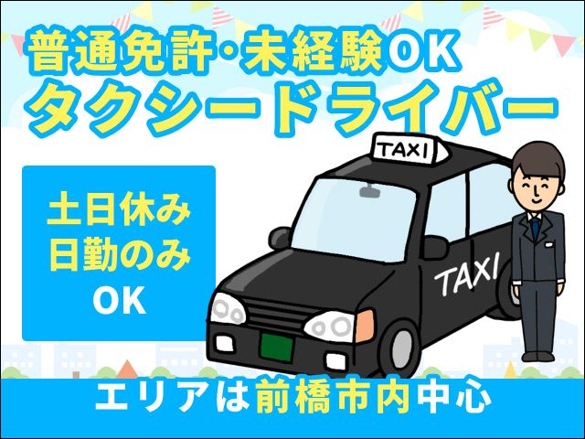 仕事内容 群馬県前橋市三俣町にあるタクシー業の 「アサカタクシー株式会社」より 正社員/タクシー運転手の募集をします ー ー ー ー ー ー <おすすめポイント> ・年間休日121日!休日やシフトの選択OK (4勤2休、3勤1休、土日休み) ・未経験スタートOK!研修制度あり ・普通免許(AT限定可)あればOK ・入社後6か月の給与保障25万円 (※4勤2休制の場合のみ)! ・定年は60歳ですが再雇用制度もあるので 20~70代の幅広い年代が活躍中 ・GOやUberなどの配車アプリの導入により 電話以外にも効率的に集客しています。 アサカタクシーは昭和25年創業以来 順調に業績を伸ばしている 業界きっての老舗企業です! ー ー ー ー ー ー < 募集職種 > 正社員:タクシードライバー (タクシー運転手) 具体的な仕事内容は、 ・近隣市町村の顧客の輸送 (主に前橋が中心です) ・料金の精算 ・日報作成(自動日報)提出 ・車両清掃 ・その他付随業務 エリアの特徴や停車スポットなど 業務のイロハやテクニックは 入社後丁寧にお教えするので安心! < 働きやすい環境 > ・年間休日121日としっかり休める! ・休日が選択可能! 4勤2休、3勤1休、週休2日(土日休み) ・日勤のみ勤務希望もOK ・時間や曜日の相談OK < アサカタクシーで働くメリット > ・業界きっての老舗企業ならでは! 知識やテクニックが身に付く ・未経験でも丁寧な研修で安心 ・最新の設備に敏感で新しいものを 取り込むことに意欲的 ・入社後、半年間最低保障あり ・夜勤ありの場合は給与保障給25万円/月 (6ヶ月)※4勤2休制の場合のみ ・二種免許取得支援制度でラクラク取得 ※当社規定あり ・引っ越し費用支給(5万円まで) < 経験不問/未経験OK > 未経験からタクシー運転手として 正社員勤務したい、という方もOK タクシー業界が初めてで知識がない方でも 安心して始められる研修制度あり。 もちろん今までタクシー乗務員として 活躍されていた方は即戦力として歓迎です。 現在はパート・アルバイト勤務だけれど 正社員としての勤務を考えている タクシー運転手さんにもピッタリ。 <幅広い年代が在籍> 中高年の方も多数在籍しております。 在籍スタッフの年齢は20代30代 40代50代60代70代と幅広く 中高年・ミドル・シニア世代も活躍中! 定年60歳ですが、再雇用制度があるため 長期安定で働くことが可能なのも魅力です。 < こんな会社です!> 弊社は携帯電波を利用した 次世代ナビ配車システムによる 迅速な配車でストレスのない スピード配車を実現。 スマホによるGO配車も導入しており 最先端を行きます。 車両や設備は最新のものを導入しており 乗客はもちろんドライバーも働きやすい <当社の 3つのキーワード > 快適 ・多人数でも快適なミニバン車両導入 ・独自の乗務員研修を行い気配り、 気遣いのできる乗務員教育を実施しています 安全安心 ・事件事故時の迅速な対応の為の セキュリティ性の向上の為のカメラ、 緊急時通報システムを完備 環境 ・低燃費のハイブリッド車をメインに 使用しています ハローワークで仕事を探しているけど なかなかいい仕事が見つからない! そんな方も是非ご相談ください。
