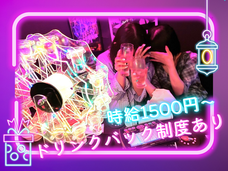時給1,500円以上 給与詳細 基本給:時給 1500円 〜 ✨昇給あり ✨ドリンクバック制度もあります♪