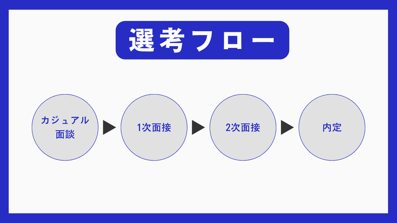 選考プロセス [1]カジュアル面談(面接ではありません) ↓ [2]1次面接ー代表 ↓ [3]2次面接ー代表+現場スタッフ ↓ [4] 採用決定のご連絡 ↓ [5] 入職手続きを進めてください ※応募から内定までは平均1週間~1ヶ月ほどになります。 ※在職中で今すぐ転職が難しい方も調整のご相談が可能です。