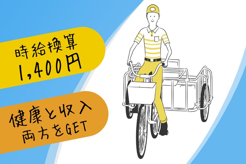 アピールポイント: ・3日間、研修を実施致しますので安心してお仕事を始められます!! ・配達拠点から5キロ圏内の配達なので体力的負担も少なめです!!