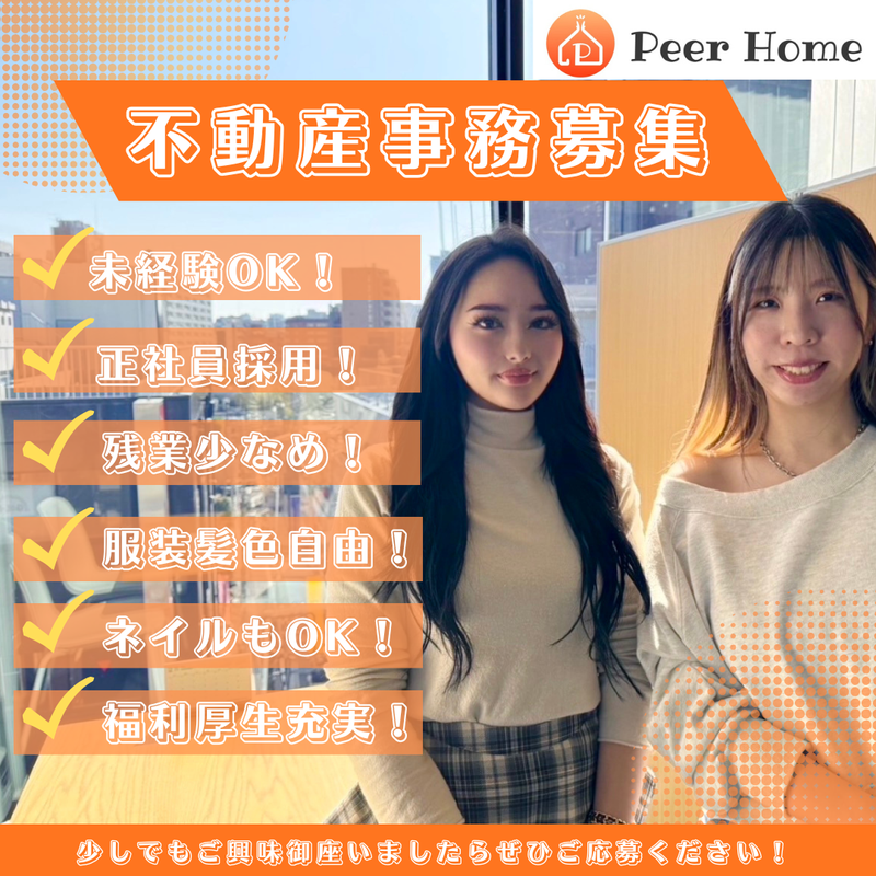 仕事内容 \弊社広告運用部の不動産事務(未経験歓迎)/\月給25万円以上/\残業月10時間以内/\5日以上の連休可/\4年連続売上アップ/ 麻布十番・六本木・広尾・渋谷・恵比寿・代官山などで賃貸・売買仲介業、賃貸管理業を手掛ける当社。不動産事業立ち上げ以来、売上は右肩上がりです。そんな当社にて、サイトに物件情報を入力する仕事をお任せします。 <お任せするミッション> 当社の成長を支えるのは、自社サイトや大手ポータルサイトに掲載された物件情報。各サイトに一括で情報を入力できる独自システムにより、効率良く集客できます。これにより完全反響営業を実現。成約率も高いことから、大手不動産会社から優先的に物件情報をご紹介いただき、いち早く仕入れることができます。 お任せするのは、サイトに物件情報を掲載したり、ご紹介いただいた物件情報を営業に共有したりする仕事。集客や仕入れを支える、会社にとって不可欠な仕事です。 <具体的には…> ■営業への新着物件の共有 毎日、決まった時間に業者間に流れる新着物件情報をチェック。それをPDFにして営業に業務SNSで送信し、営業活動をサポートします。 ■物件情報の入力 1日30~50件ほどの物件情報を入力。物件の住所や間取り、画像などを、フォーマットに入力します。画像の数が足りない場合、弊社カメラマンに撮影を依頼しましょう。 ■PV数の改善・更新 自社システムから物件情報のPV数を確認。数字が悪い場合は、画像を追加するなどして改善します。また情報が古くなった物件、条件が変わった物件などを定期的に更新。成約した物件は掲載を取り下げます。 ■営業サポート お客様からのお電話・ご来店に対応したり、入居申込書などの書類を作成したりします。 ※内勤の仕事です。 <仕事のポイント> ★特別な知識は必要なし! 不動産の知識は、入社後に教えます。「敷金・礼金」などがわかればOKなので、専門知識は一切不要。自社システムの使い方も、わからないところを随時教えるので安心です。