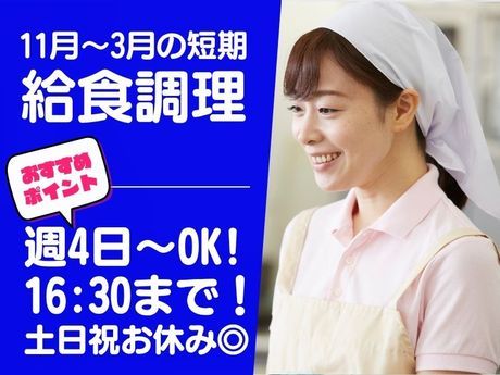 ★11月~3月の短期OK◎保育園での給食調理サポート♪週4日~&土日祝休みで働きやすい!