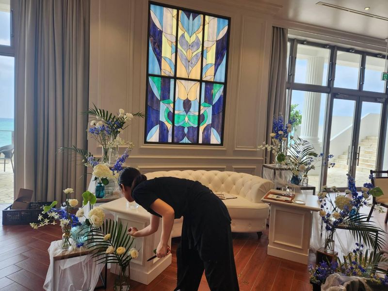 仕事内容 ブライダル装花装飾を中心とした制作スタッフ募集! ウェディング装花やイベントなどの空間装飾を手がけるお仕事です♪ 特別な瞬間や日常の空間を彩ることが私たちの仕事。 お花やデザインが好きな方、一緒にワクワクする最高の空間を作りませんか? <こんな仕事をしています!> ・結婚式に飾るお花やブーケの打ち合わせ~制作~当日のセッティング ・オフィスビルや商業施設などの空間装飾の企画、デザインの提案 ◎具体的には ✅お花の下準備:市場からの受けとり、水やりなどお花が一番元気に咲くよう整えます ✅制作:ブーケや会場装花、テーブルコーディネートの作成、資材の準備 ✅搬入・セッティング:重い花器を運んだり、会場を走り回って設営します ✅撤去:式が終わった後の片付けも大切な仕事です 【この仕事の面白さと厳しさ】 きらびやかな会場、新婦を彩るブーケ。私たちが作るのは、そんな感動の舞台です。 重い荷物を運んだり、テキパキと準備に走り回ったり。決して楽な仕事ではありませんが、 完成した会場を見た時の震えるような感動は、この仕事でしか味わえません。 ★2~3ヶ月で基本的なことが覚えられます。(小さめのアレンジメント作成などからスタート) ★半年ほど経過:仕事の全体像が見えてくると思います! ✨未経験で心配・・そんな方も大丈夫! お花の向きや組み合わせによって印象が変わったり、扱いが難しいお花があったり、 それがこの仕事の面白さ。 経験を積むうちに自信が持てるようになりますので、ご安心ください! 先輩社員のお打ち合せに同席したり、社内共通のツールで、今までの事例や作品をいつでも見ることができるので、 どんどんセンスが磨かれていきます。 ※勤務地につきましては、下記いずれかの住所になります。(希望を考慮します) ・沖縄県中頭郡読谷村儀間600 ホテル日航アリビラ内 ・沖縄県浦添市牧港5-3-3 102号