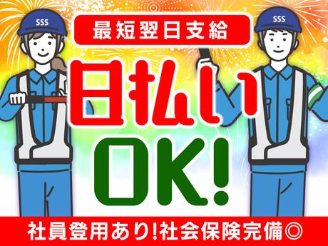 仕事内容 業界トップ水準高日給!短期&日払いも可能♪<未経験の方はもちろん経験者や資格保持者歓迎> 道路工事・建設・建築現場や駐車場、イベント会場、交差点で 車両の誘導や歩行者の安全を確保しながら、誘導・ご案内業務です! ★警備員のお仕事が未経験の方も大歓迎 ★交通誘導2級や指導教育責任者の資格保持者歓迎 ⇒交通誘導2級or指導教育責任者には≪サンエス特別給付金10万円≫ 業界トップクラスのサンエス警備保障で安定収入◎現場も多く、お仕事が途切れることはありません! / 【★】若手も中高年も活躍できる 【★】U・I ターン歓迎 【★】異業種からの転職者も歓迎 \ ~~~サンエスにご応募いただいた理由の一部をご紹介!~~~ 〇未経験OK・無資格でも高収入!ブランクOK 研修あり&手当あり♪ 〇とにかく高日給&高収入 〇経験者や資格保持者には給付金や手当あり 〇案件・勤務地多数! 〇時間や曜日が選べる・シフト自由! 〇週2、3日もOK! 【平日のみOK、土日祝のみOK、曜日固定OK】 〇WワークOK・副業可能! 〇扶養内勤務もOK ~~~正社員登用あり(実績多数)~~~ 全くの未経験で入社して、 現場のリーダーや支社長などにステップアップしていく社員も多数! やる気や人柄次第で、正社員登用も行っていますので 長く活躍できます♪長期歓迎です!